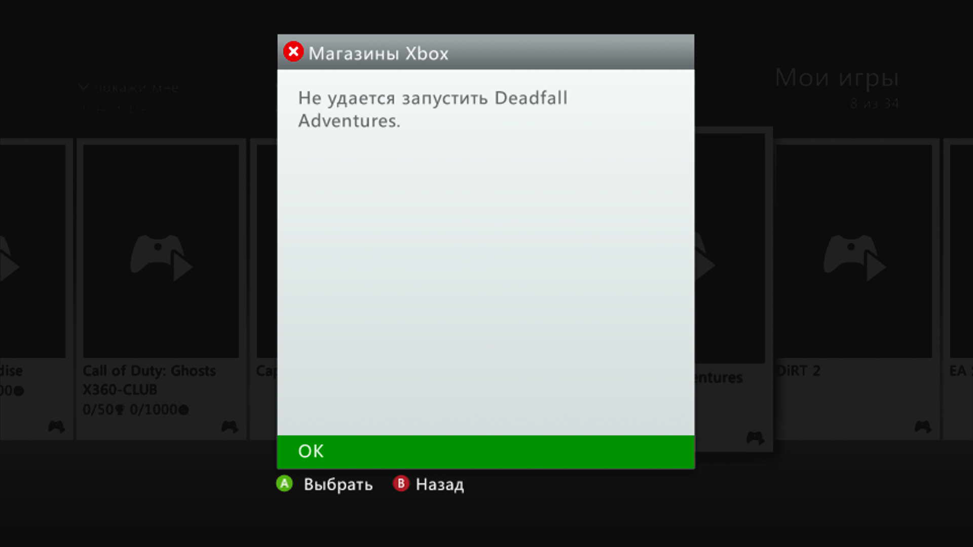 консоли Xbox не поддерживается на вашей консоли Xbox 360.Возможно имеется обновление для поддержки этой игры..."И после опять выходит в Аврору. |